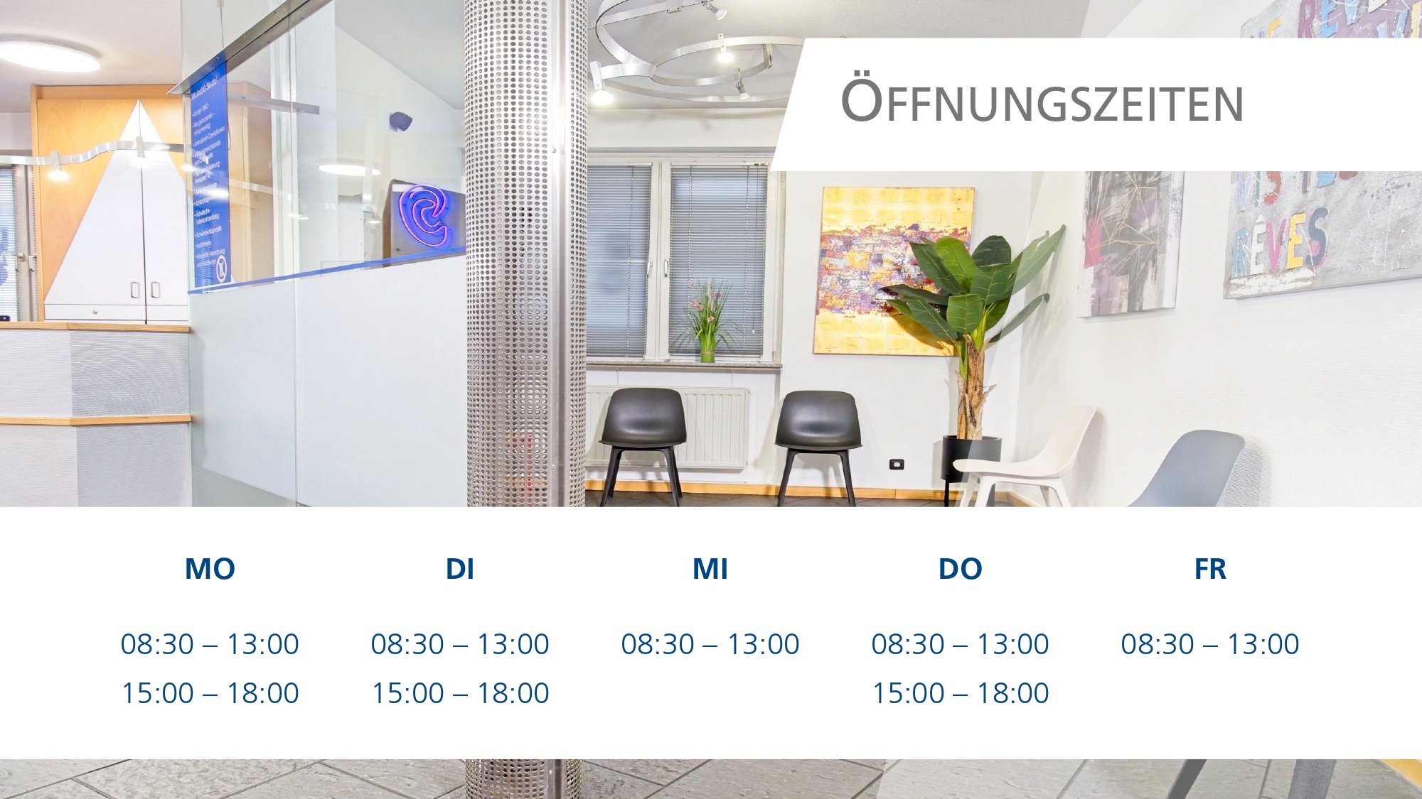 Über unser Terminverwaltungs-Tool Doctolib haben Sie des weiteren die Möglichkeit unkompliziert und ausserhalb unserer Öffnungszeiten Ihren Wunschtermin zu vereinbaren.